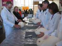 ShowingShowing rabbits can be a lot of fun. You can take it as seriously as your interest and budget allows you. Your first decision is what kind of rabbit do you like, because you must choose a pure bred if you want to show competitively. Once you have decided the kind of rabbit you like, get in contact with your local club. They will be able to steer you toward a reputable breeder. Visit a few shows too. This will help you decide what breeds are available in your area. Don't feel intimidated by all the knowledge the people you meet have. New people are always welcome, as breeders enjoy talking about their rabbits and most people are there because, like yourself, they genuinely like rabbits. Once you have done your homework, talked to lots of different people and decided what you would like, find a breeder and you are on your way. Rabbits are judged in seperate age groups and to make things easier I have drawn a table to work out when a rabbit should be born to fall into the right class in the show. This calender works for my area where kittens are judged from 8 weeks up to 14 weeks. Juniors are aged between 14 weeks and under 5 months. Adults are 5 months of age up. Here in South Australia we are affiliated with the British Rabbit Council. Your area may be different so check with you local club. |